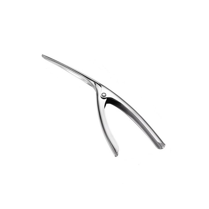 4. método de uso:Insira a ponta fechada do mestre de camarão no topo da casca. Empurre suavemente a ponta (ainda fechada) sob a casca até que ela saia além da cauda. Pressione as alças juntas até que o camarão e a casca se separem. Lave cada camarão sob água fria.