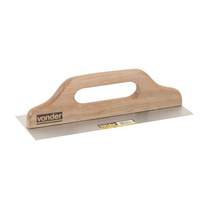 | Informações Complementares | Perfil da desempenadeira de aço: Lisa / Material do cabo da desempenadeira de aço: Madeira / Tipo do cabo desempenadeira : Fechado / Tipo de fixação do cabo na lâmina de aço: Por rebite / Largura da desempenadeira : 120,0 mm / Comprimento da desempenadei |