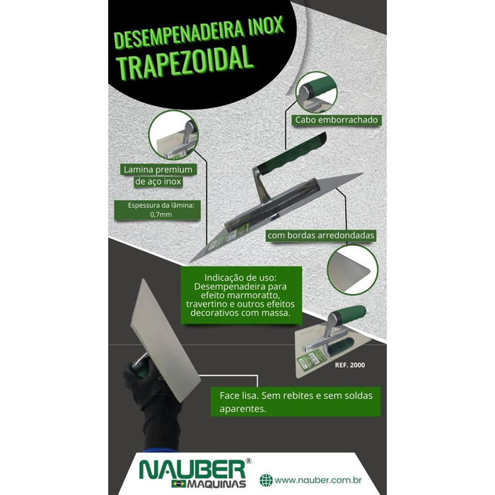 Desempenadeira Efeito Decorativo Trapezio Inox 13x24 Nauber