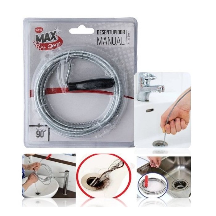 Desentupidor Manual Aço Inox 3m Pia Cozinha Ralo Lavanderia