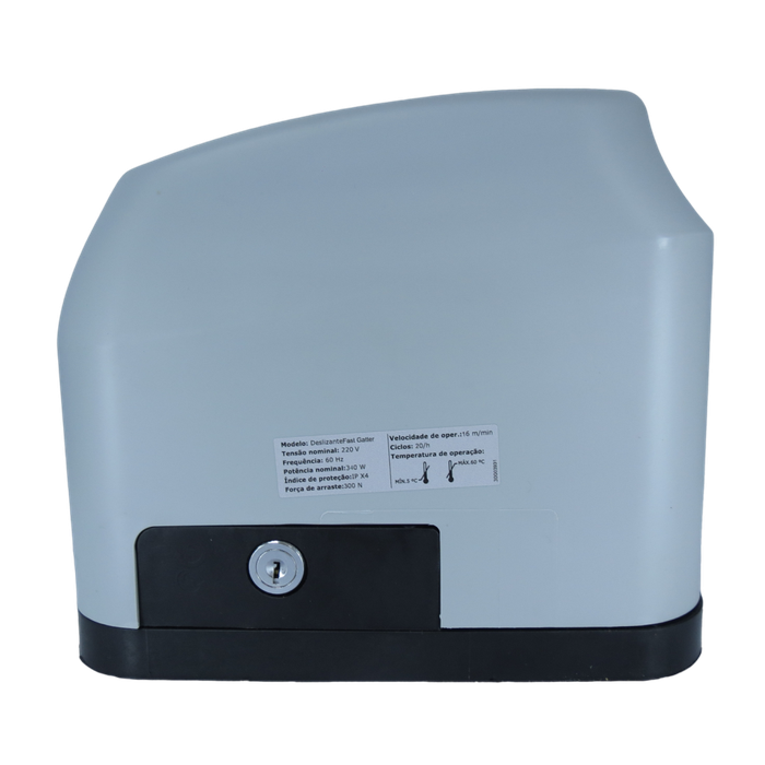 O Motor Deslizante Fast Gatter da Nice é projetado para portões residenciais de até 400 kg, oferecendo uma solução moderna e eficiente para automação. Equipado com um motor de 1/4CV, permite até 20 ciclos por hora e realiza a abertura em apenas 10 segundos, dependendo do ajuste de desaceleração e do peso do portão. Seu design inclui tecnologia de fechamento suave soft closing, proporcionando mais segurança e durabilidade no uso. A estrutura do motor conta com carenagem resistente à radiação UV e uma coroa externa em alumínio para maior eficiência operacional. O destravamento manual com chave garante praticidade em situações de emergência ou falta de energia.