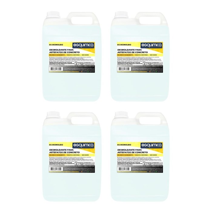 Desmoldante Para Artefatos de Concreto Descrições e Aplicações; Desmoldante para aplicações em formas plásticas, metálicas e de madeira, proporciona um acabamento uniforme livre de porosidades, manchas ou bolhas. Aplicação em artefatos de concreto em geral, tais como; postes, pilares, vigas, placas, colunas, tubos, lajes, pisos, pavers, vasos, entre outros. Modo de Usar; Diluir 1 parte do produto para até 2 partes iguais de água, aplicar com pincel, brocha, espuma ou pulverização, de maneira uniforme sem deixar excessos, após alguns minutos concretar. Benefícios; - Elimina óleos Tóxicos e Poluentes - Desmoldagem Perfeita - Fácil Aplicação - Elimina bolhas e manchas - Alto Rendimento - Produto neutro sem cheiro - Base Vegetal - Ecologicamente Correto Anúncio contém 20 litros Desmolbio Embalagem A; 30cm x L: 38cm x P; 28cm Peso 20 kg