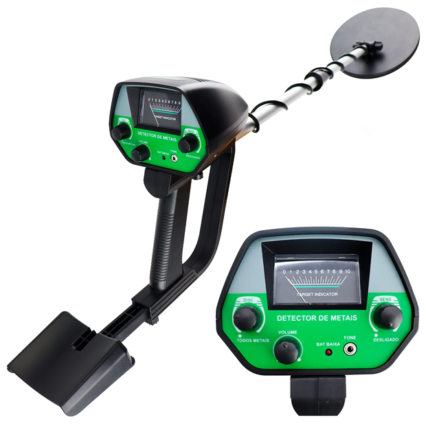 Diâmetro da bobina: 20 cmAlcance de detecção: 20 cmSensibilidade de detecção: Metais de 3 cm de diâmetroImersão máxima: 10 cmModo de alarme: Sonoro e visualAltura regulável: De 74 a 109 cmFonte de alimentação: 2 bateria 9VTemperatura de operação: -15 a 45°Peso líquido: 0,83 Kg