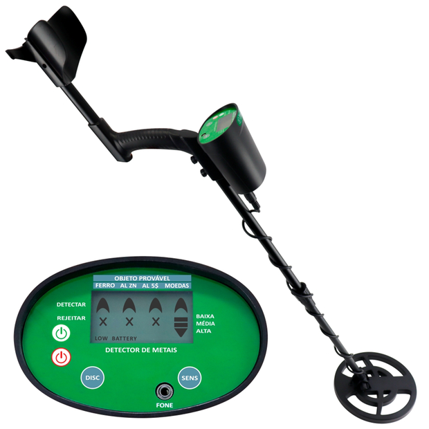 Diâmetro da bobina: 20 cmAlcance de detecção: 20 cmSensibilidade de detecção: Metais de 3 cm de diâmetroImersão máxima: 10 cmModo de alarme: Sonoro e visualAltura regulável: De 74 a 109 cmFonte de alimentação: 2 bateria 9VTemperatura de operação: -15 a 45°Peso líquido: 0,83 Kg