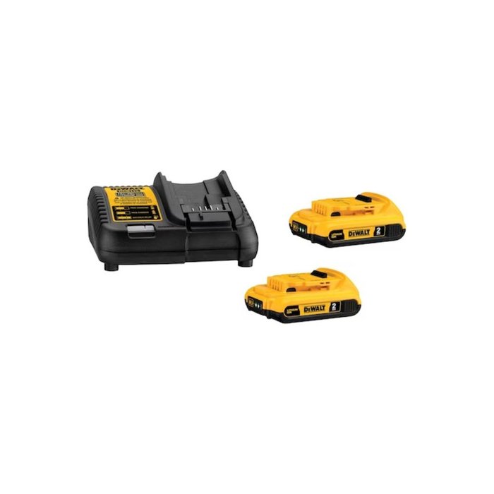 Baterias livre de efeito memóriaIndicador de LEDs permite o controle imediato do nível de carga Bateria leve com maior autonomia Visão Geral do Produto A melhor opção para garantir a carga e o funcionamento dos equipamentos sem fio. O kit é composto por 02 baterias de 2Ah e 01 carregador bivolt. As baterias são livre do efeito memória, contém indicador de 3 LEDs, que permite o controle imediato do nível de carga da bateria. Compatíveis com os carregadores DCB107-B3, DCB1106-B3, DCB115-B3, DCB118-B3 e DCB104. Inclui (2) Baterias 2Ah (1) Carregador Bivolt GARANTIA DE FABRICA DEWALT 3 ANOS