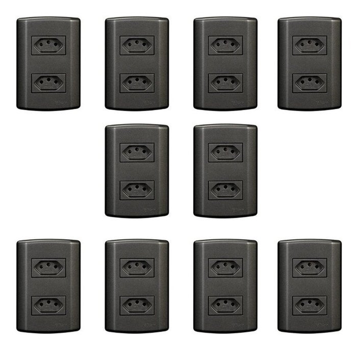 Dez Conjuntos com 2 Tomadas 2p+t 20a 250v, Modular, com Placa 4x2 e Suporte Grafite