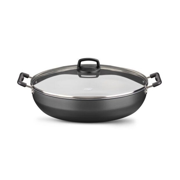 A panela Wok é perfeita para você que está em busca de praticidade na hora de cozinhar! Esta panela proporciona infinitas possibilidades de preparo incluindo frituras, ensopados entre outras diversas refeições. Possui alumínio altamente resistente e durável com espessura de 2.0 mm aumentando a vida útil de seu produto. Com exclusivo antiaderente 5 camadas, não deixa agarrar os alimentos no fundo da panela facilitando na hora da limpeza. Além disso, dispensa o uso de Óleo!