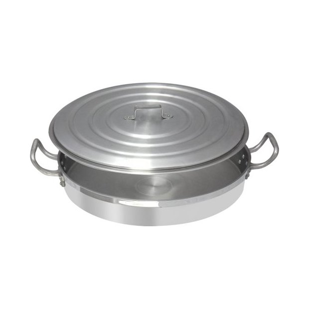 Disco Alumínio Para Gengiskan Com Tampa 8 LitrosCaracterísticas:• Material: Alumínio puro• Capacidade: 8 litros• Tampa em alumínio• Espessura: 1,5mm• Produto ideal para uso domésticoMedidas:Diâmetro: 40cmAltura total: 9cmAltura da borda: 6,5cmComprimento: 52cm