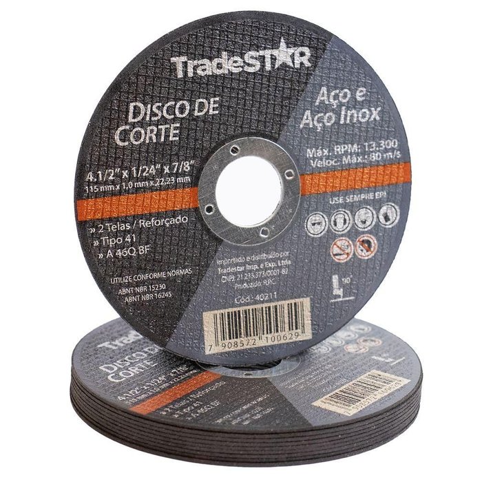 As especificações do Disco de Corte Metal 4.1/2 115x1,0 mm incluem: