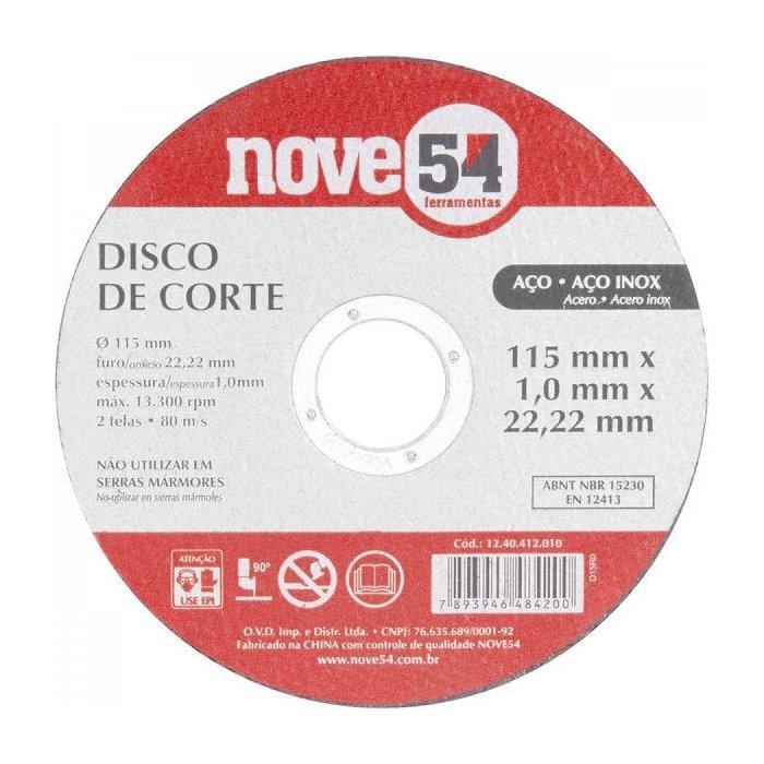 Disco de corte 115 mm x 10 mm x 2223 mm DCN 954 Nove54