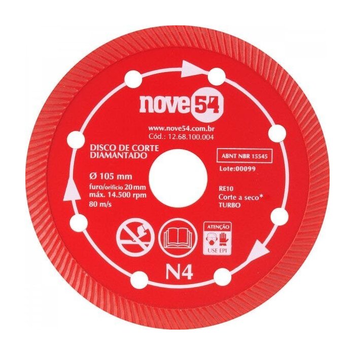 Disco de corte diamantado 105 mm turbo N4 Nove54