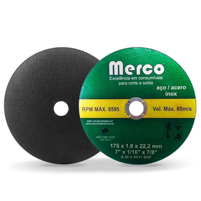 | Itens Inclusos | 01 - Caixa contendo 50 unidades do Disco de Corte MERCO 7" x 1,6mm x 22,2mm |