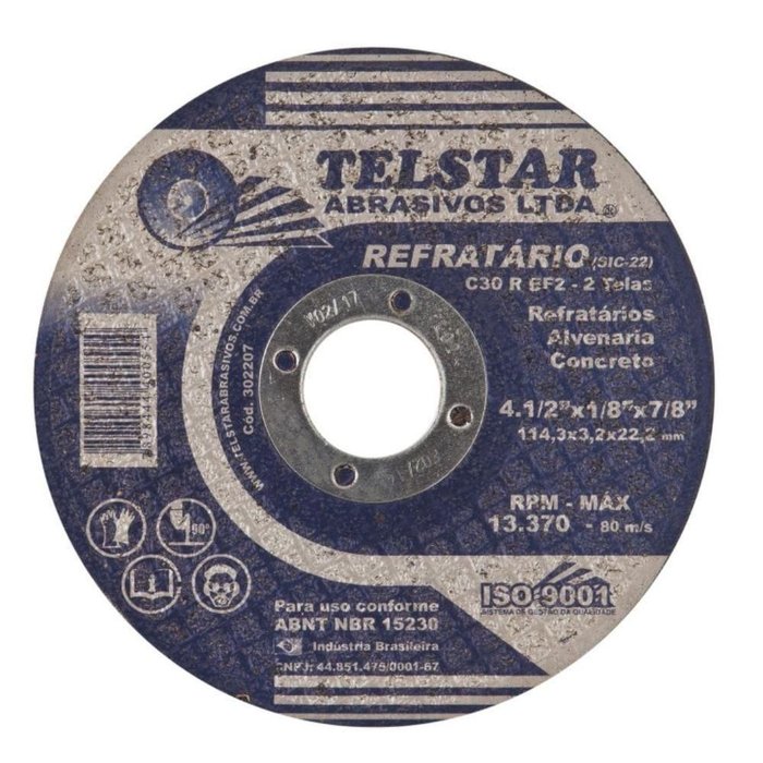 Disco de corte para refratário 115 mm (4.1/2') - EDA O QUE É O DISCO DE CORTE PARA REFRÁTARIOO disco de corte para refratário é uma ferramenta especializada projetada para cortar materiais refratários, como tijolos, blocos e peças de cerâmica refratária. Esses discos são fabricados com materiais abrasivos resistentes ao calor e à abrasão, garantindo uma operação eficiente e precisa ao cortar materiais refratários. Eles são amplamente utilizados em indústrias como a de fundição, siderurgia e cerâmica, onde o corte preciso de materiais refratários é essencial para a produção e manutenção de fornos, caldeiras e outros equipamentos de alta temperatura. Os discos de corte para refratário estão disponíveis em uma variedade de tamanhos e tipos, adaptados para diferentes aplicações e exigências de corte. COMO UTILIZAR O DISCO DE CORTE PARA REFRÁTARIOPara utilizar o disco de corte para refratário, primeiro, equipe-se com os equipamentos de segurança adequados, como óculos de proteção e luvas resistentes ao calor. Em seguida, monte o disco em uma rebarbadora ou serra circular, garantindo que esteja bem fixado e alinhado. Posicione a peça de refratário que deseja cortar em uma superfície estável e segura. Ligue a ferramenta elétrica e guie o disco ao longo da linha de corte desejada, aplicando uma pressão suave e constante. Certifique-se de resfriar o disco regularmente durante o corte, utilizando água ou um lubrificante adequado para evitar superaquecimento. Ao concluir o corte, desligue a ferramenta elétrica e aguarde até que o disco pare completamente de girar antes de remover a peça cortada. Limpe o disco após o uso e armazene-o adequadamente para garantir sua durabilidade. O uso correto do disco de corte para refratário garante cortes precisos e eficientes em materiais refratários, essenciais para diversas aplicações industriais. DESCRIÇÃO DO DISCO DE CORTE PARA REFRÁTARIO- Disco de corte ideal para refratário; - Diâmetro: 115 mm (4.1/2'); - Furo: 22 mm (7/8'); - Espessura: 3,2 mm (1/8'); - Marca: EDA; - Código: 7EF. Distribuidor Autorizado para todo o Brasil. O Grupo Piveta Ferramentas é uma empresa com mais de 30 anos no mercado e líder no segmento de Máquinas e Ferramentas para Usinagem, contamos com mais de 25 Mil produtos para melhor lhe atender. É importante ressaltar também que nossa atuação não se limita ao setor de Usinagem Mecânica, nossa variedade de produtos nos permite atender a vários setores como Agronegócio, Embalagem Plástica, Retifica de Motores, Usinas de Açúcar e Álcool, Manutenção Industrial (Usinagem e Caldeiraria), Mineração, Área de Fertilizantes, Frigoríficos, Usinagem Médio para Grande Porte e Automação Industrial. Desta forma fortificando e ajudando no desenvolvimento econômico do nosso país.