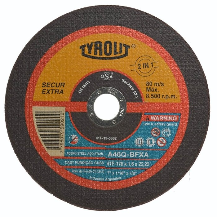Disco de Corte Secur Extra 7" - 178 X 1,6 X 22,2 - Tyrolit (5 unidades)
