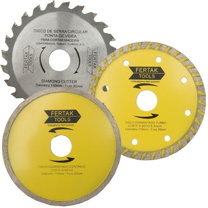 Disco de Corte Serra Circular Madeira 24 Dentes + Disco Corte Diamantado Continuo + Disco Corte Turb