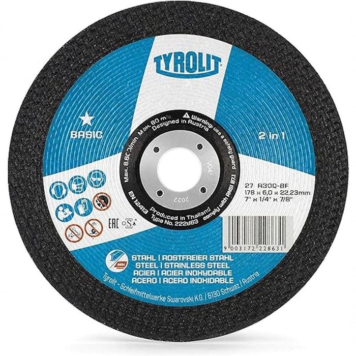 Disco de Desbaste Inox 7” x 1/4” x 7/8” - TYROLIT