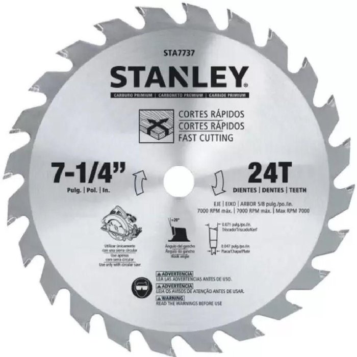 Disco de Serra Circular 7-1/4\'\' C/ 24 Dentes - Stanley