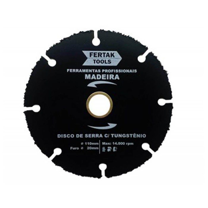 Disco de Serra com Tungstênio 110 x 20mm Para Madeira Fertak - Utilizado para realizar cortes em madeiras além de ter resistência superior podendo ser utilizado em madeiras com pregos e resíduos de concreto O disco de serra foi produzido para oferecer a você eficiência em sua aplicação além de resistência e durabilidade.