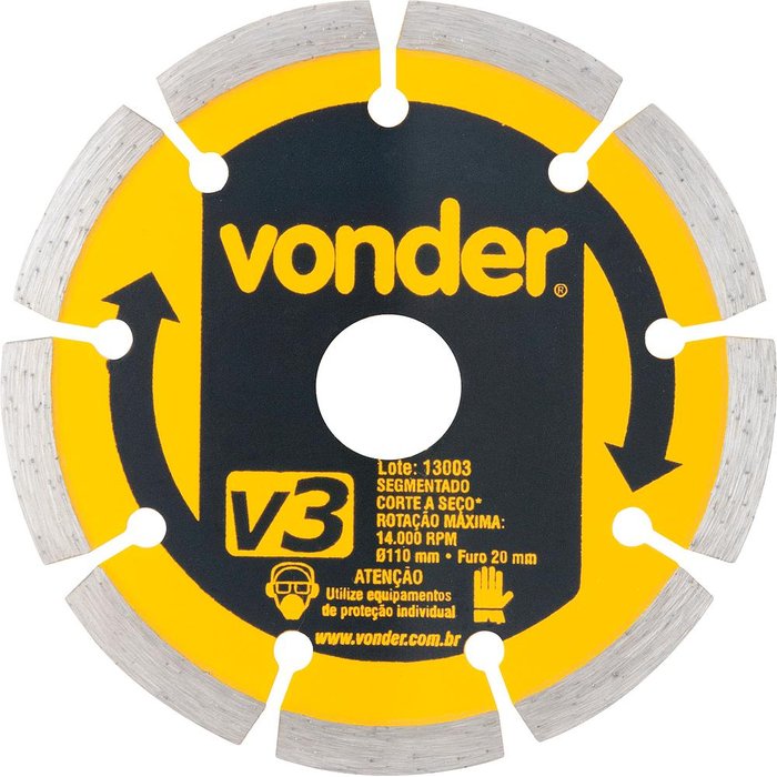 Disco diamantado 110mm segmentado furo 20mm v3 - Vonder