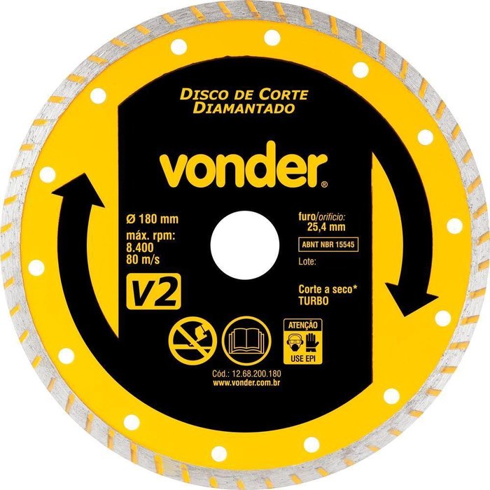 Disco Diamantado 180mm Turbo Furo 25mm V2 - Vonder