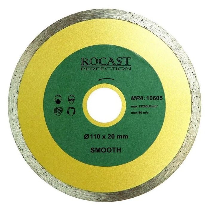 Disco Diamantado - Liso - Med. 110 x 20 - Ref. 34,0003 - ROCAST Disco de corte diamantado Liso é indicado para Cerâmicos e Esmaltados, sendo na construção civil ou alvenaria no geral, com corte a seco. Proporciona qualidade e produtividade na operação.