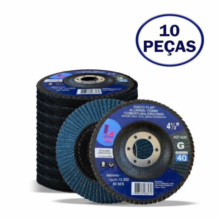 | Modelo | Disco flap 4 1/2 zircônia 40 com 10 lotus |