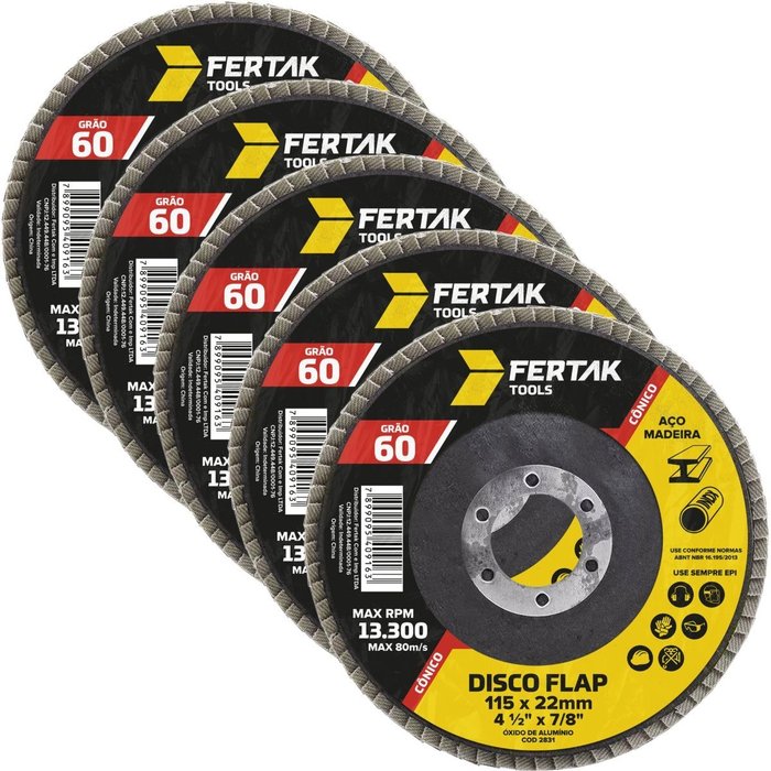 Disco Flap Cônico 115mm Grão 60 Madeira Aço Desbaste 05 Un