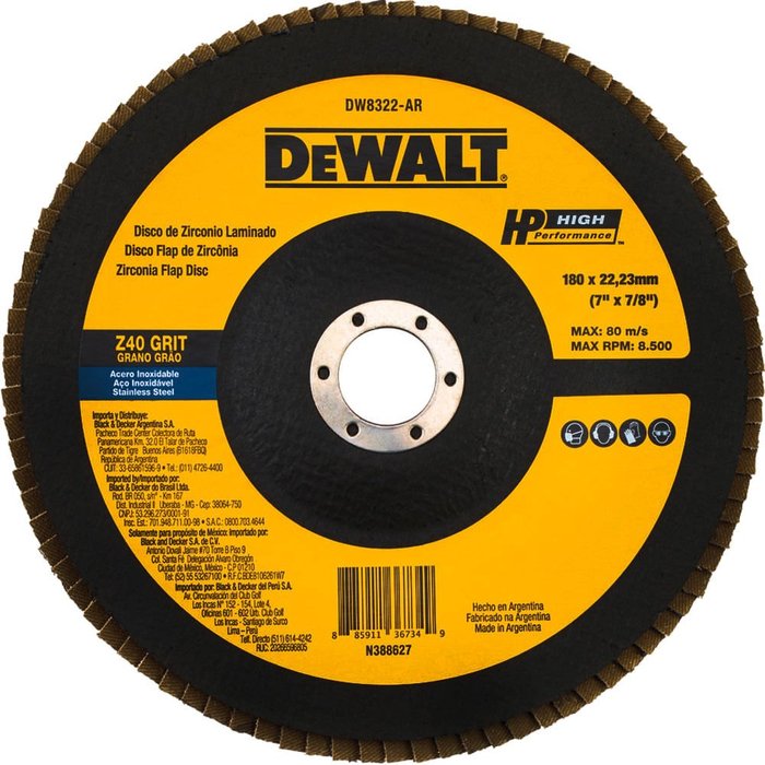 Disco Flap Plástico Reto 7"x7/8" G40 Dewalt DW8322P-AR DW8322P-AR