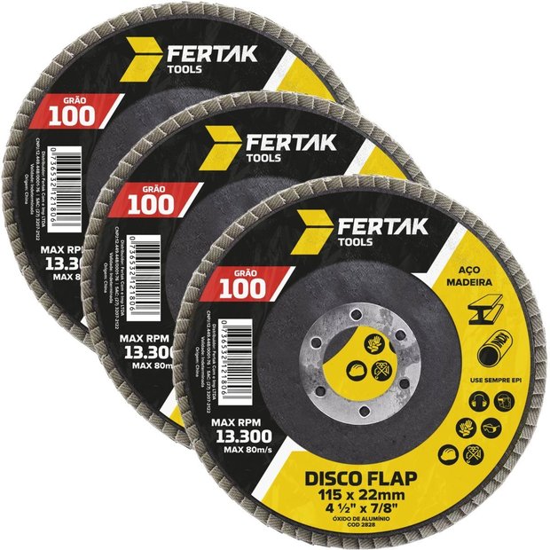 Disco Lixa Flap 115mm Grão 100 Madeira Aço Desbaste | 03 Un