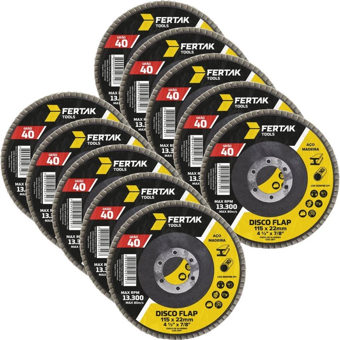 Disco Lixa Flap 115mm Grão 40 Madeira Aço Desbaste | 10 Un