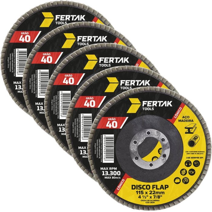 Disco Lixa Flap Cônico 115mm Grão 40 Madeira Aço Desbaste | 05 Un