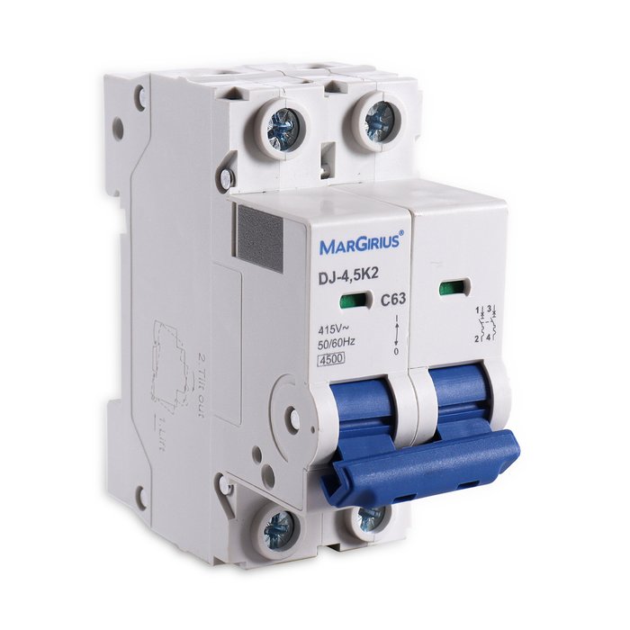 Não comprometa a segurança da sua instalação elétrica. Escolha o Disjuntor Bipolar de 63A Curva C  MarGirius e tenha tranquilidade em seu dia a dia.