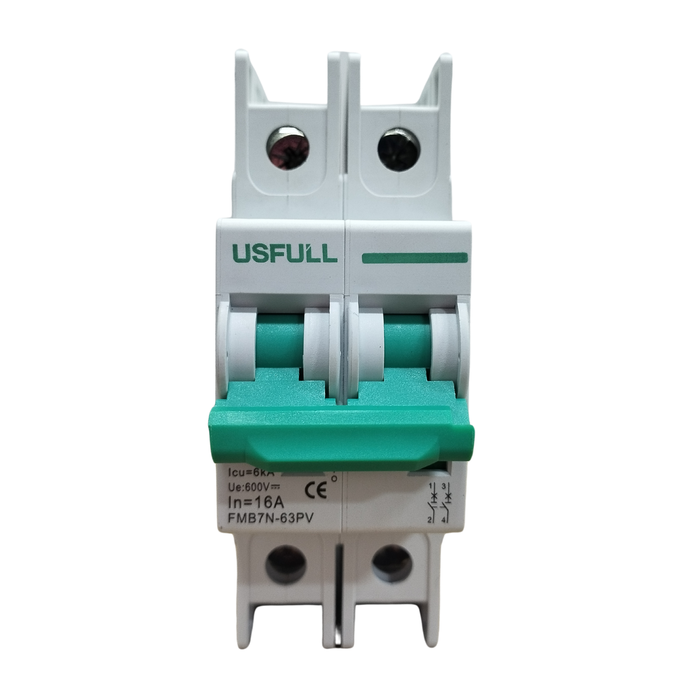 Disjuntor Bipolar Cc USFULL é a solução ideal para proteger o seu sistema fotovoltaico. Com capacidade de 16A e tensão nominal de até 600V, ele oferece segurança, eficiência e confiabilidade em aplicações solares.