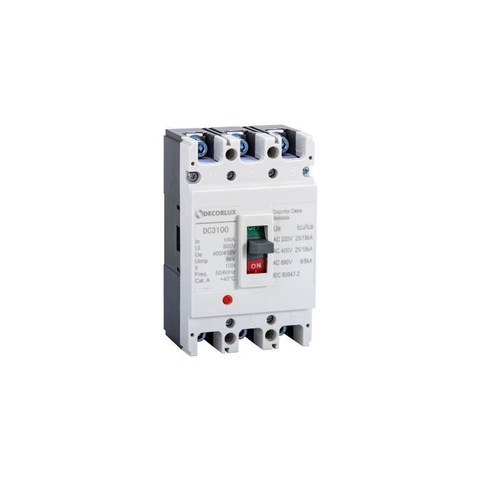 Os disjuntores caixa moldada sao desenvolvidos com alta capacidade de interrupção.Utilizados em redes elétricas 50/60Hz com tensão de 400/690Vac e corrente máxima de até 800A.Sua função é proteger contra sobrecarga, curto circuito e baixa tensão, Protegendo circuitos e equipamentos. Podem ser instalados na horizontal ou na vertical sem alterar seu funcionamento