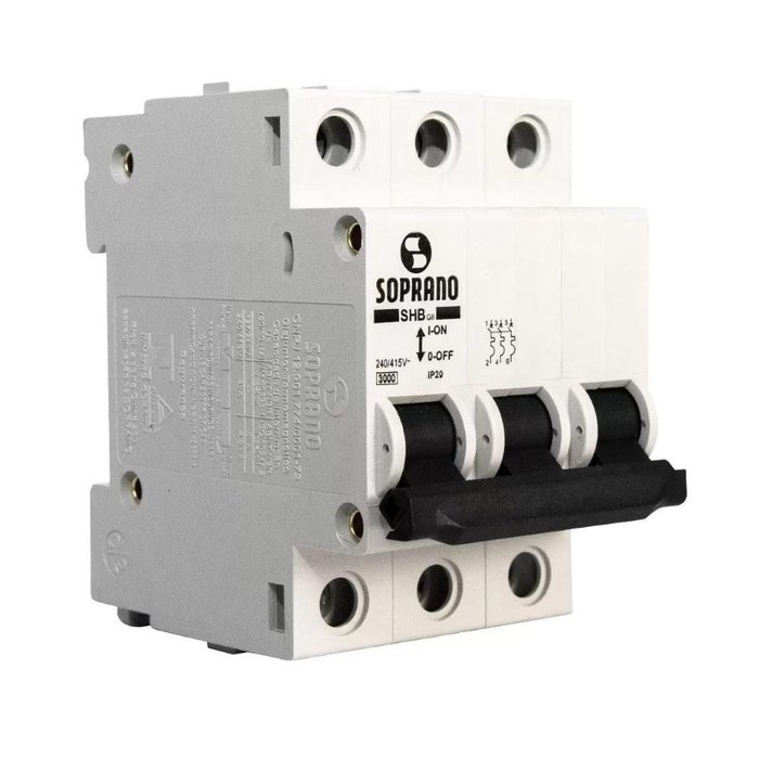 Escolha seu disjuntor e a quantidade através da variação no próprio anuncio e adicione ao carrinho. FAVOR SELECIONAR A AMPERAGEM NO CAMPO DE VARIAÇÕES, DESSA FORMA SERÁ ENVIADO O MODELO SELECIONADO NO ATO DA COMPRA. Descrição do Produto: Disjuntor Trifásico da marca Soprano, escolha a corrente de 06A, 10A, 16A, 20A, 25A, 32A, 40A, 50A ou 63A.
