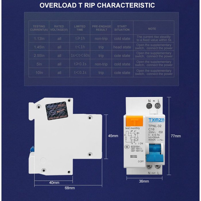 Disjuntor Dr Bipolar Fuga Diferencial Residual 2p 20a Ddr TOMZN