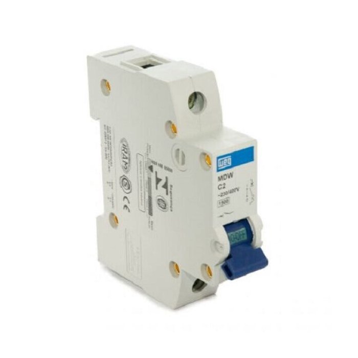 Disjuntor Mini DIN Unipolar 2A 3KA Curva C MDW-C2 WEG Branco/Azul