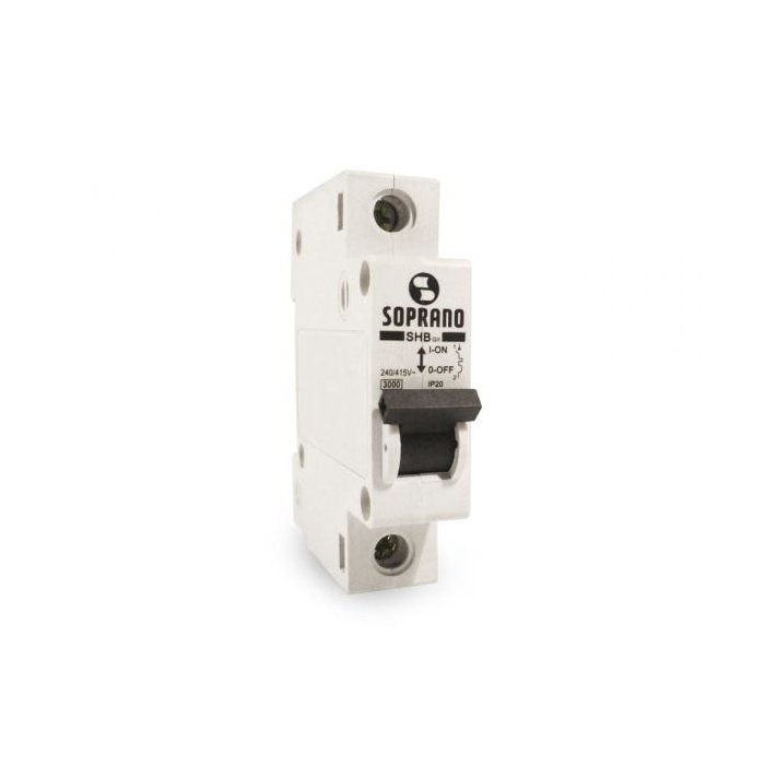 Disjuntor Soprano Din Unipolar Curva C 50A - SOPRANO * Grau de proteção IP20. * Tensão máxima de isolamento de 415(Vca). * Temperatura ambiente de 30°C. * Frequência de 50/60 Hz. * Fabricado em termoplástico de engenharia. * Certificação Inmetro (até 63A)