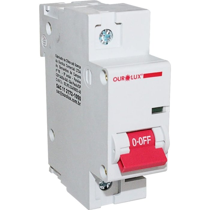 Disjuntor Unipolar Curva C 100 Ampères - 26059 - OUROLUX Descrição: A OUROLUX tem em seu mix de produtos disjuntores e IDRs (Interruptor Diferencial Residual) para garantir a proteção da instalação elétrica doméstica, comercial e industrial. Além disso, nossas soluções são de fácil instalação e asseguram contra choques e descargas elétricas que possam danificar patrimônios, causar incêndios ou até provocar ferimentos e queimaduras de alto risco. Os disjuntores termomagnéticos foram projetados com tecnologia exclusiva Ourolux. Protegem as instalações elétricas e o patrimônio de seus usuários contra curto-circuitos e sobrecargas, oferecendo segurança sob medida e dupla proteção: Térmica contra sobrecargas e magnética contra curto circuitos. Características: - Frequência: 50/60 Hz - Tensão de Trabalho 230V - Proteção IP20 - Padrão de Instalação Trilho Din 35 - Curva de Disparo C - Temperatura Ambiente -5ºC +40ºC - Nível de Proteção Classe 1 Orientações: - Produto em conformidade com a norma de segurança (INMETRO); - Certificado INMETRO ABNT NBR NM 60898:2004 (até 63A); - Proteção contra curtos-circuitos; - Proteção dos cabos contra sobrecargas; - Produto usado para a proteção de circuitos em geral, circuitos indutivos com picos de corrente, como por exemplo, ar condicionado, micro-ondas, bombas elétricas, elevadores, etc; - Economia de tempo, fácil instalação, os disjuntores são versáteis, práticos e otimizam espaço nos quadros de distribuição facilitando sua instalação. Certificação: - Número do certificado: UL-BR 19.1211 / UL-BR 19.1203 - Portaria: Disjuntores - PT Inmetro nº 348/2007 Especificações:CódigoAmperagemSeção máxima dos condutoresCorrente de RupturaTamanho260446A1mm²4K75x18x79mm2604510A1,5mm²4K75x18x79mm2604716A2,5mm²4K75x18x79mm2604820A2,5mm²4K75x18x79mm2604925A4mm²4K75x18x79mm2605032A6mm²4K75x18x79mm2605140A10mm²4K75x18x79mm2605250A10mm²4K75x18x79mm2605363A16mm²4K75x18x79mm2605880A25mm²6K67x27x81mm26059100A35mm²6K67x27x81mm26060125A50mm²6K67x27x81mm