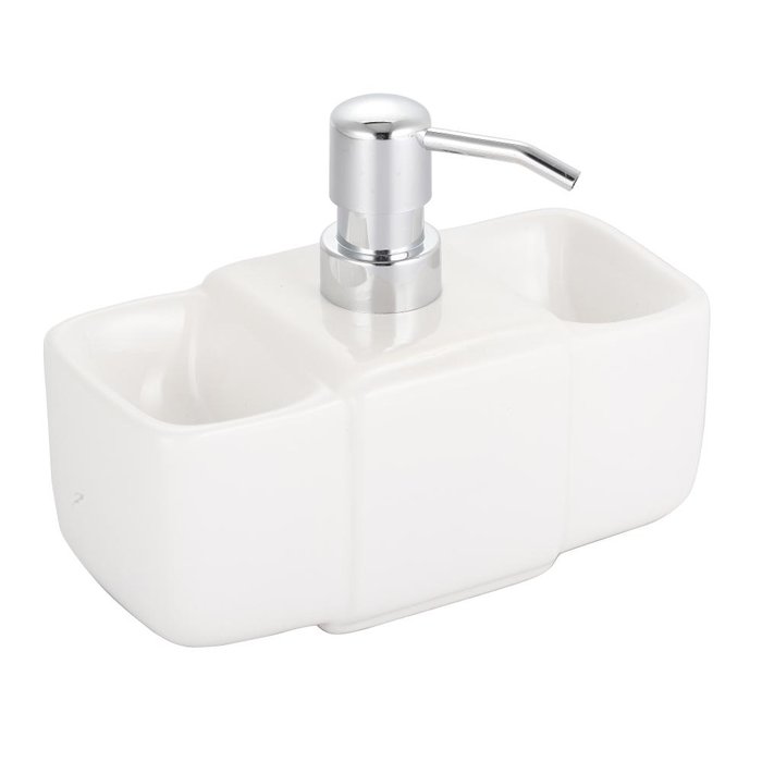 Dispenser Clean Up para detergente, esponja e sabao em ceramica L17,5xP8,5xA14cm cor branca