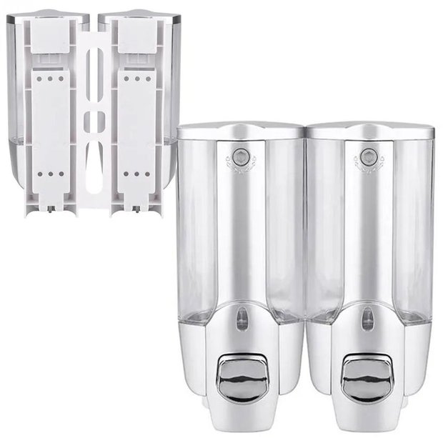 Dispenser Duplo com reservatório para Shampoo, Sabonete ou Álcool possui manuseio pratico e fácil de ser instalado. Garante eficiência e evita desperdício na saída do sabonete.