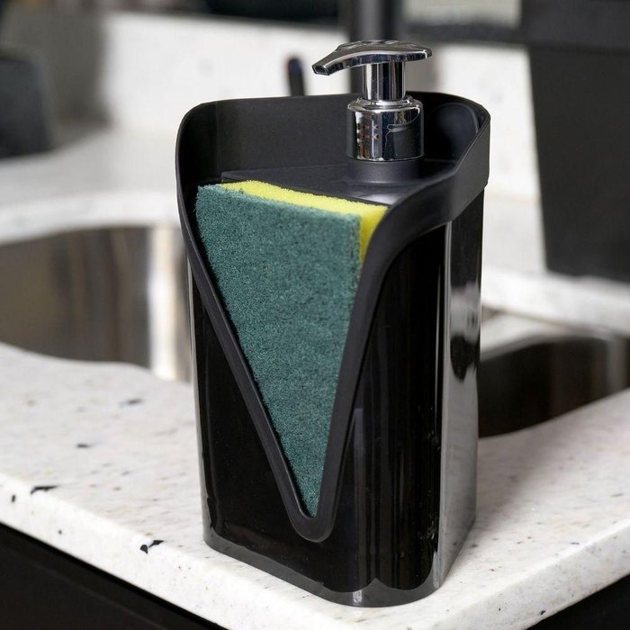 Dispenser Porta Detergente Esponja Cozinha Pia 500ml Preto