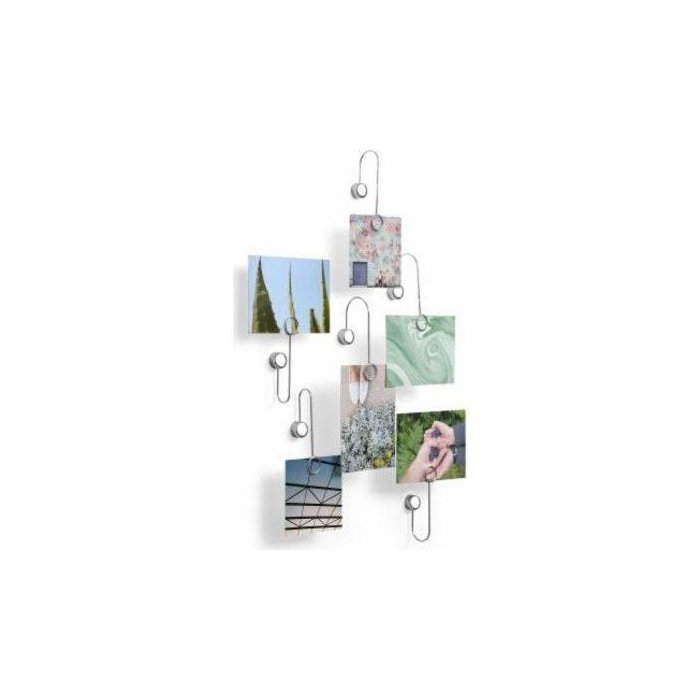 Contém 6 clips fabricados em metal com pintura prateado, onde é possível exibir fotos de diversos tamanhos.