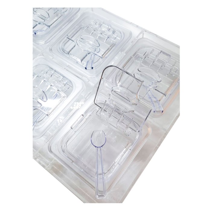 Display Expositor Condimentadora Em Acrílico Com 6 CUBAS Em POLICARBONATO 1/6x65 mm 900/1000 ml + 6 TAMPAS 1/6 Com FLIP, DOBRADIÇA e ABERTURA CAMBRO + 6 COLHERES 20 cm SB