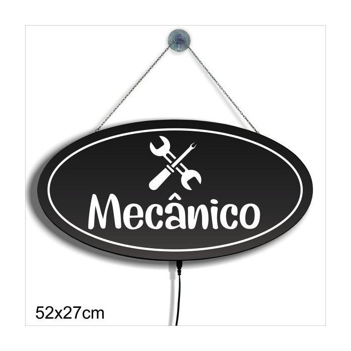 Display Luminoso Letreiro LED Oval 52x27cm Mecânico Carro Caminhão