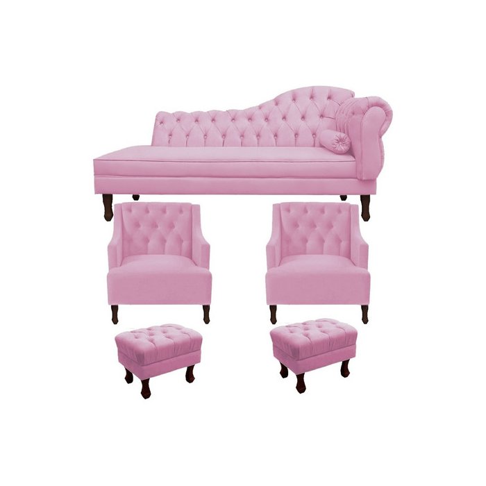 Divã Cancun 140 Esquerdo + 2 Poltronas + 2 Puffs Rosa Bebê Rosa Bebê