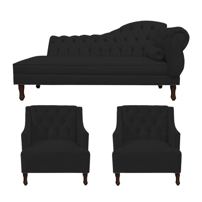 Divã Cancun 140cm Esquerdo +2 Poltronas Genesis Preto Preto