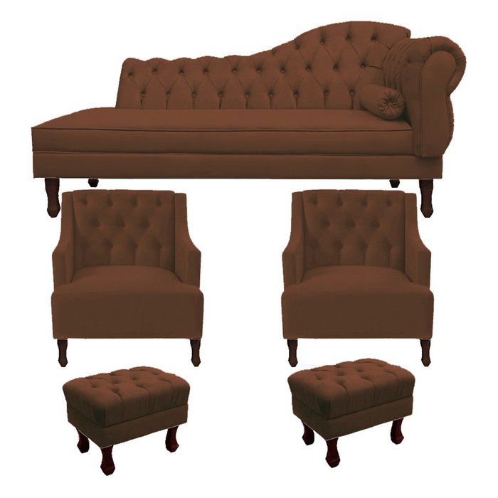 Divã Cancun 160 Esquerdo + 2 Poltronas + 2 Puffs Marrom Marrom