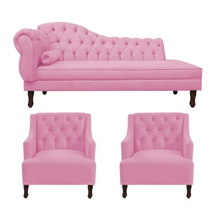 Divã Cancun 160cm Direito +2 Poltronas Genesis Rosa Rosa