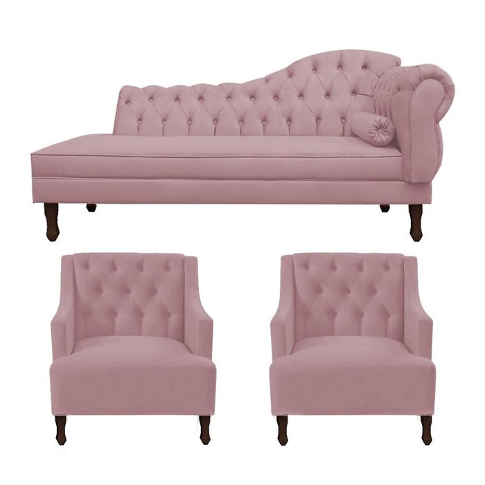 Divã Cancun 160cm Esquerdo +2 Poltronas Genesis Rosê Rosê